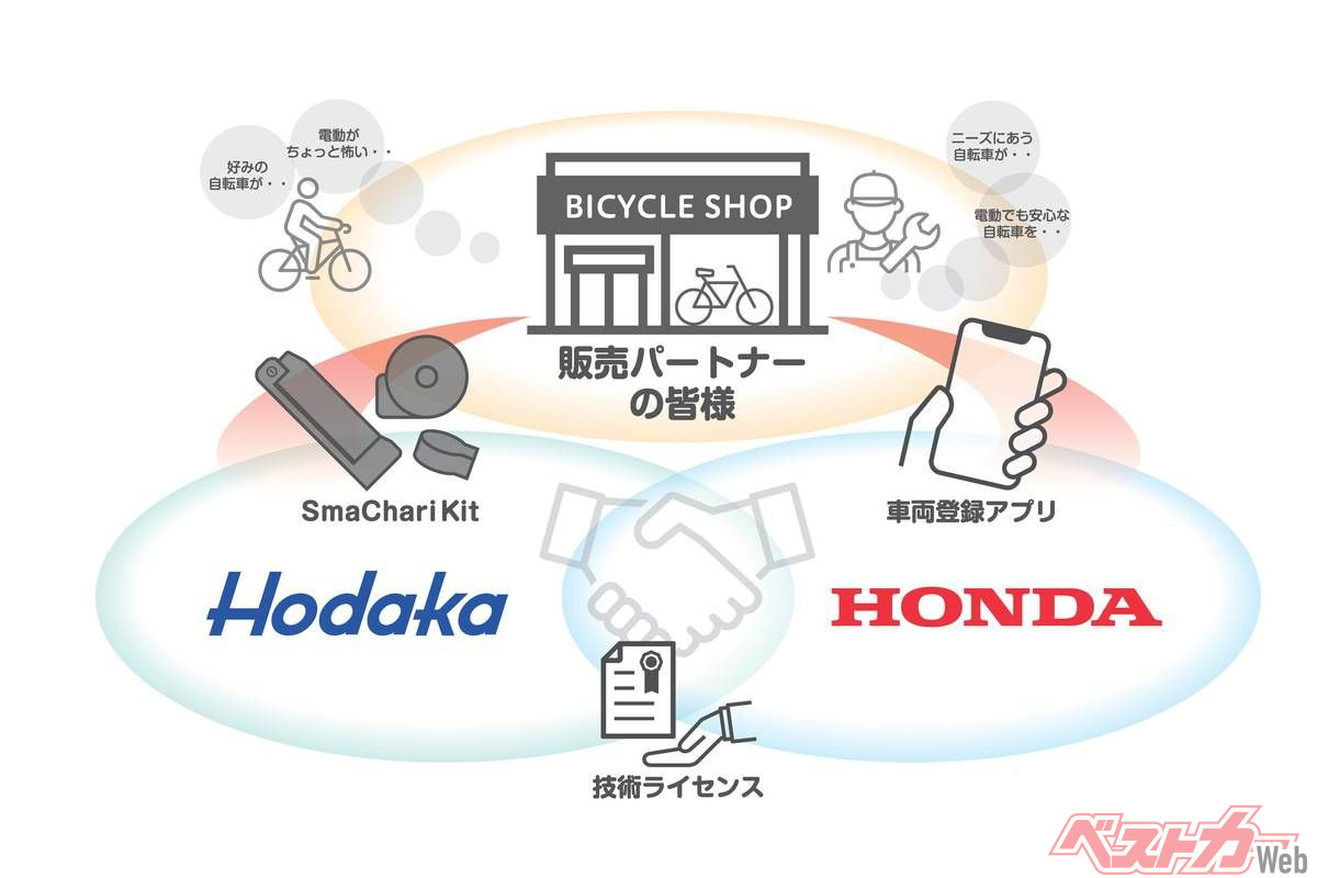 そんなスマチャリが今回新たに、自転車メーカー・ホダカと連携し、メーカーや自転車店向けに「スマチャリキット」として10月よりパッケージ販売を開始する。価格や販売店の情報は未発表だが、自転車店にてホンダのパワーユニットを購入でき、気軽に扱えるという立ち位置は、まさに現代の「カブf型」と言ってよいだろう。さらに自転車装着済の完成車も2026年1月には市販化が予定されており、今後は見かける機会も増えてくるはずだ。電動アシスト自転車の更なる普及に、往年の「バタバタ」のように大きな存在感を発揮していくのだろうか? 興味深い新事業に注目だ。