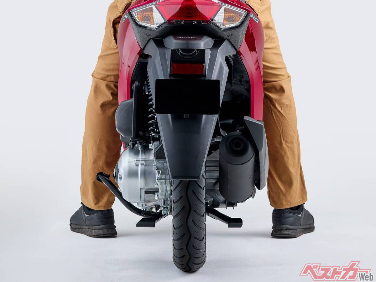 このうち「ディオ110 Lite」は、ベースとなるDio110のエンジンをもとに、最高出力を3.7kW(5.0PS)/5250rpmに抑制。基本設計はディオ110のままであるため、搭載される空冷4ストロークOHC単気筒「eSP(イーエスピー)」エンジンは、停車時に自動でエンジンを停止するアイドリングストップ・システムと、電子制御式ACGスターターといった便利な装備を引き継いでいる。燃費は定地燃費72.5km/L、WMTCモード値56.6km/Lと、ディオ110よりも向上した。