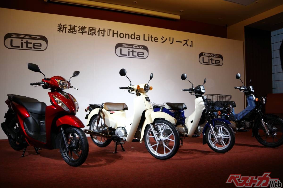2025年4月に施行された「新基準原付」制度。これに適合する新モデルがいよいよ登場した。先鞭をつけたのはホンダで、今年11月より「ディオ110 ライト」12月より「スーパーカブ110 ライト」をそれぞれ発売する。スーパーカブはバリエーションモデル「スーパーカブ110プロ ライト」「クロスカブ110 ライト」も同時ラインナップとなり、全4種の「ライトシリーズ」として、原付一種区分を支えることとなった。