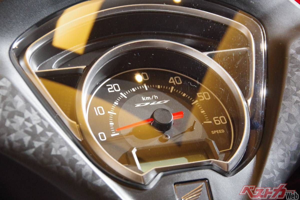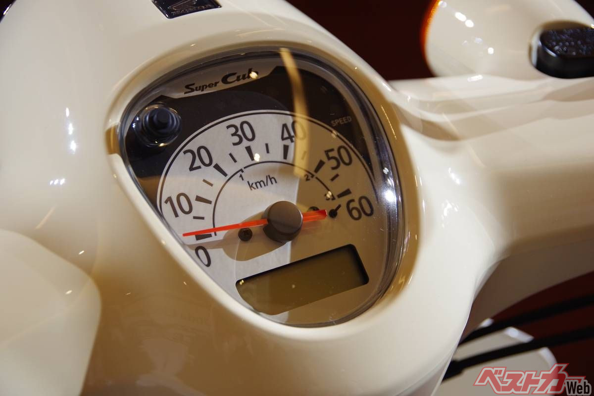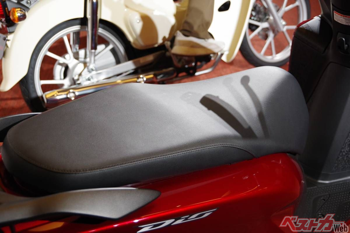 また、これまでに50ccのラインナップになかった原付二種の装備を原付一種として利用できるのもうれしい。ディオ110ライトでは、原付一種よりも大きく余裕のあるボディや17Lの広いメットインスペース、アルミキャリアなどが110譲りとなる。さらに足つき性アップのために、専用設計のローシートも採用されており、シート高は110から15mmダウンとなる745mmに設定された。スーパーカブ110ライトシリーズでは、従来のスポークホイール/チューブタイヤ/ドラムブレーキという足回りが、110同様のキャストホイール/チューブレスタイヤ/ABS付きディスクブレーキとなり、快適性やメンテナンス性が向上。さらにメーターにはLCD液晶が追加され、シフトインジケーター、時計といったこれまでになかった装備を利用できるようになった。