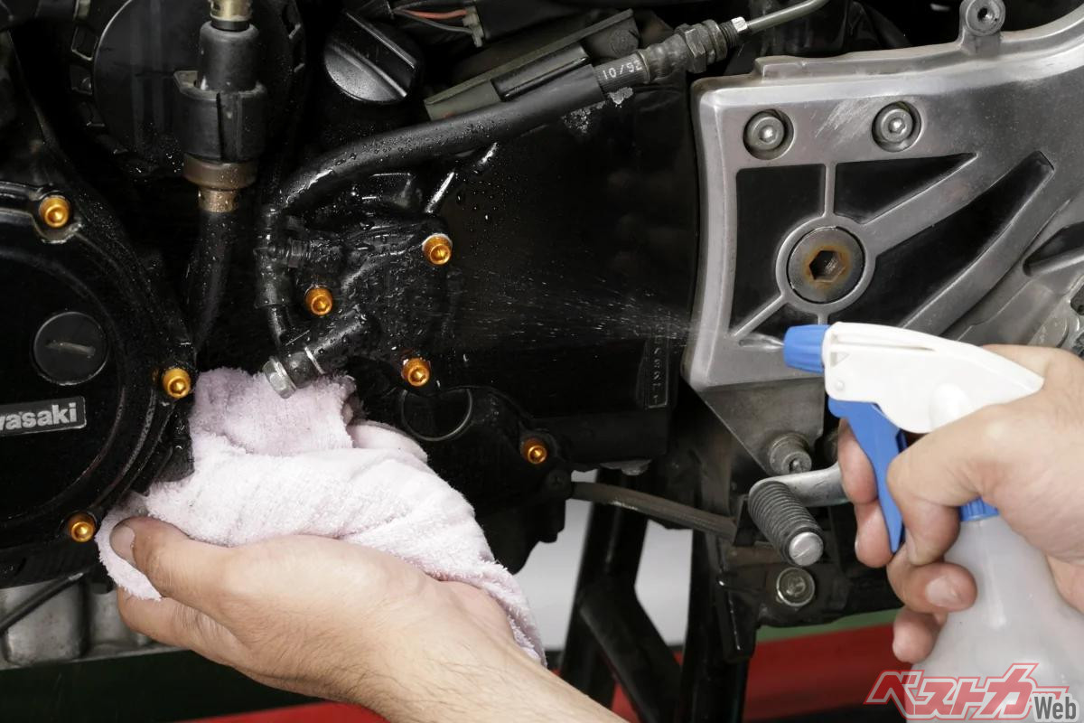 油圧クラッチのレバータッチが悪い!? そんな時はマスターだけじゃなくレリーズもチェックしよう 2025年10月24日 / バイク コメントする 0 #バイク#Webikeプラス クラッチレリーズにホースを接続してブレーキフルードを注入する。