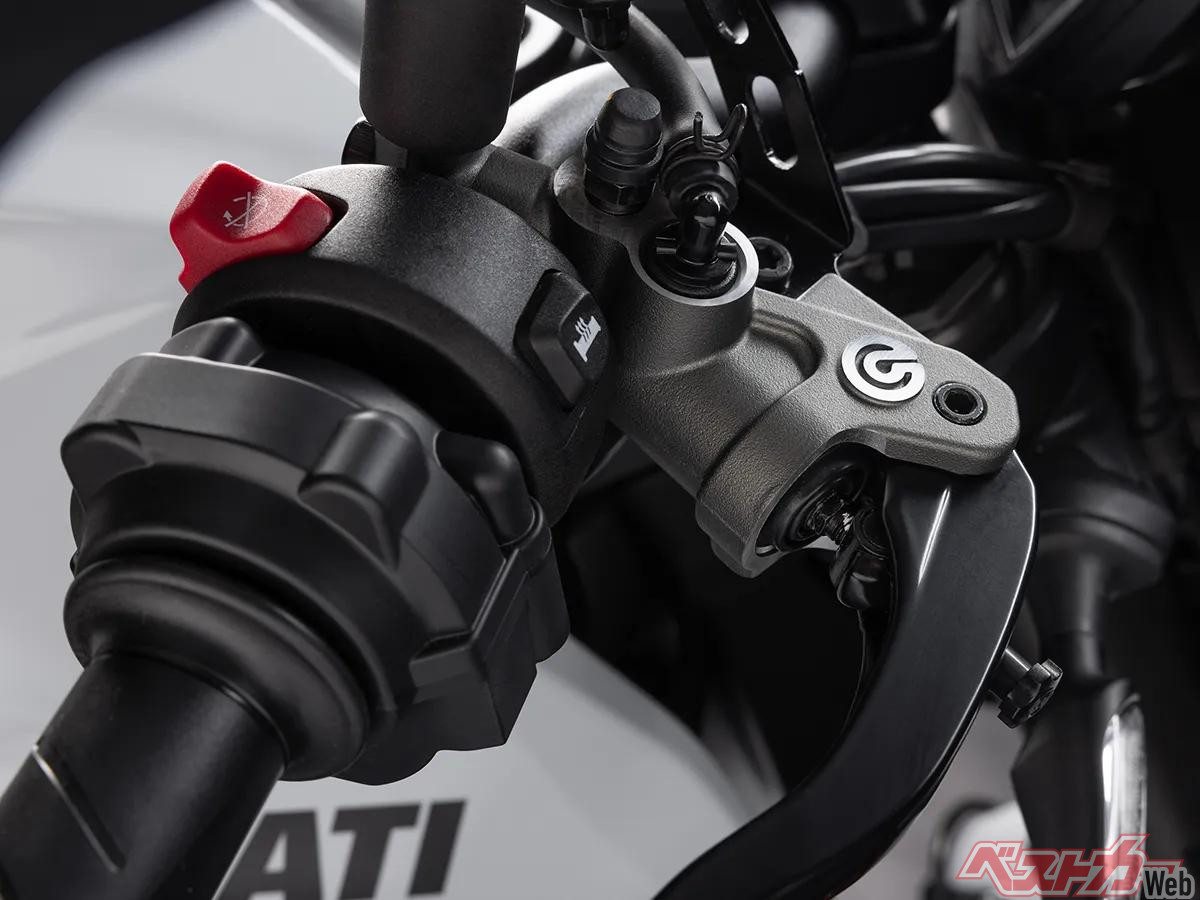 フロントのブレーキマスターシリンダーには、ブレンボ製PR18/21ラジアルマスターシリンダーを採用する。