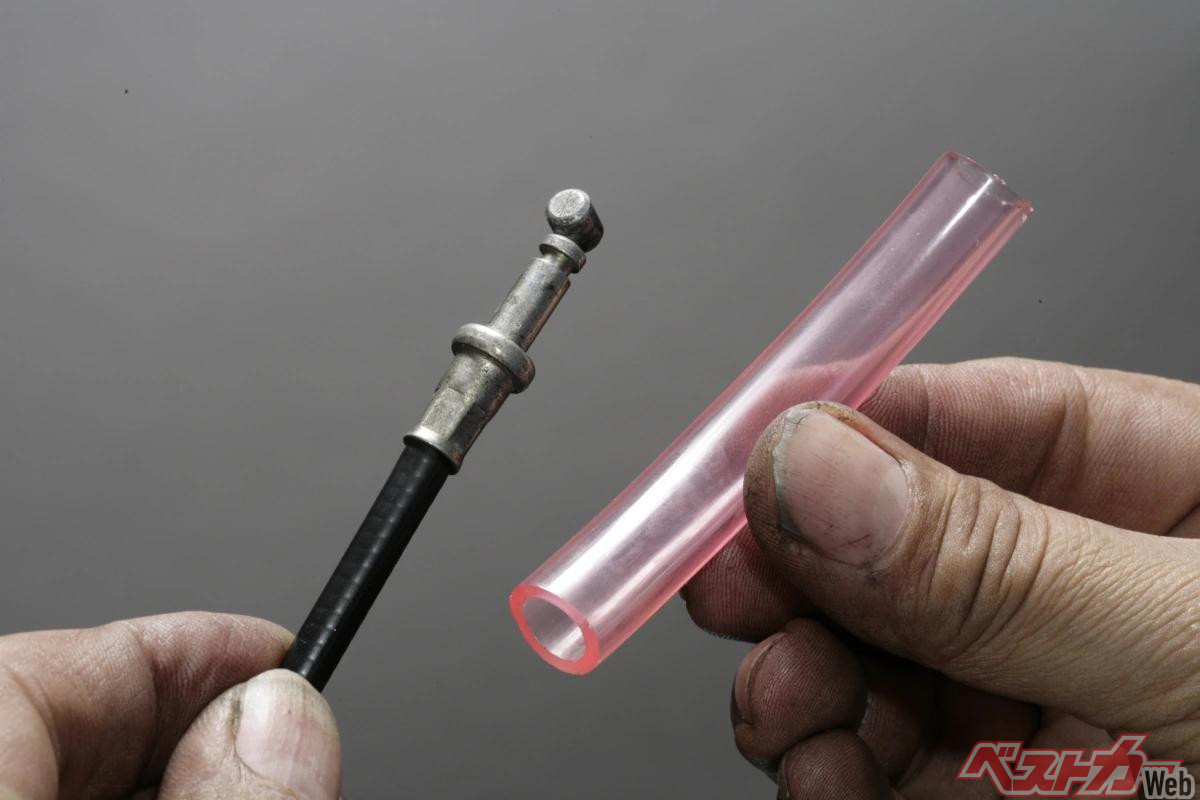 その上でフレッシュなグリスや油分を注入することで、インナーケーブルとアウターケーブル内面の接触部分に潤滑被膜が形成されてフリクションロス低下と摩耗低減効果を発揮します。