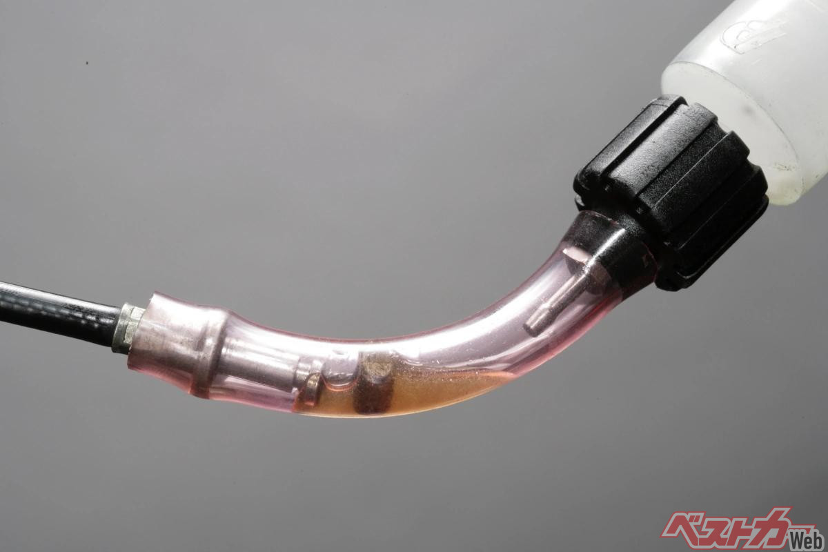 - ポイント3・シリンジやバキュームテスターで潤滑油を吸引することでケーブル内部にまんべんなく潤滑油を行き渡らせることができる