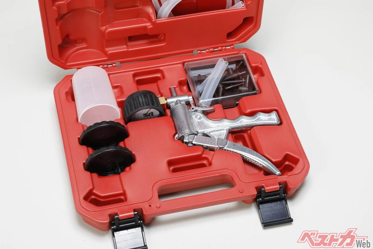 ここではシリンジを使用しましたが、ブレーキのエアー抜きなどで重宝するバキュームテスター(ハンドポンプ)で負圧を発生させても同様の効果が得られます。