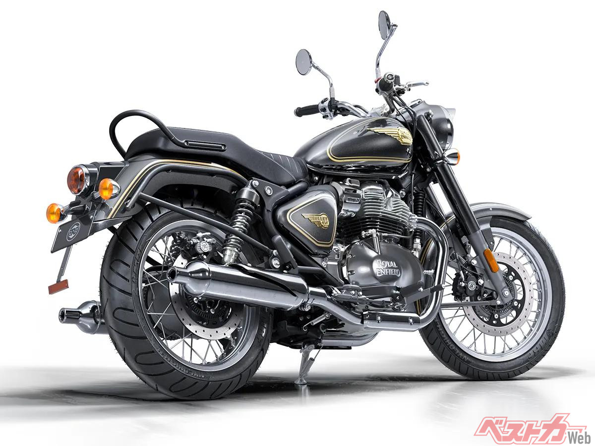 精力的にニューモデルを投入し続けるロイヤルエンフィールドが、EICMA2025で「ブリット(Bullet)650」を発表した。クラシック650やスーパーメテオ650、ショットガン650と基本構成を共有するバリエーションモデルで、兄弟車よりもさらにクラシカルな仕立てが特徴となる。