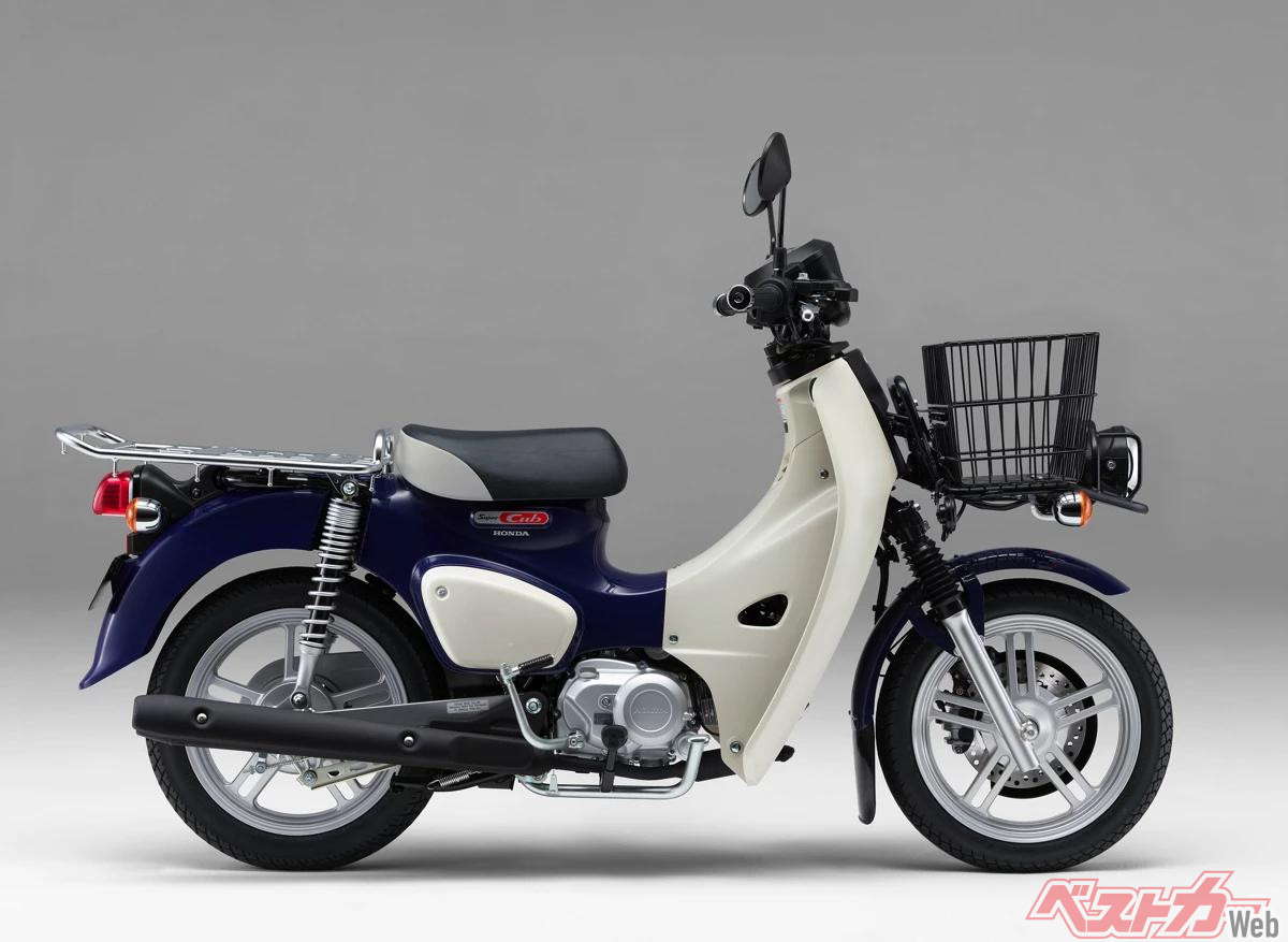 まず、ビジネスバイクの「スーパーカブ110ライト」「スーパーカブ110プロライト」「クロスカブ110ライト」。いずれも、110ccの「「スーパーカブ110」「スーパーカブ110プロ」「クロスカブ110」をベースに、109cc・空冷単気筒エンジンの最高出力を5.9kW(8.0PS)から3.5kW(4.8PS)へ抑えて、新基準原付に対応したモデル群です。
