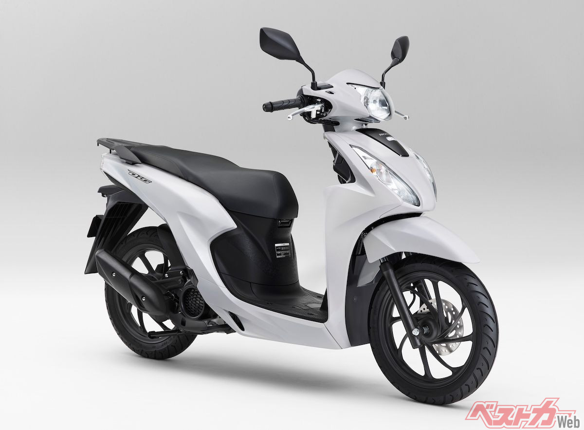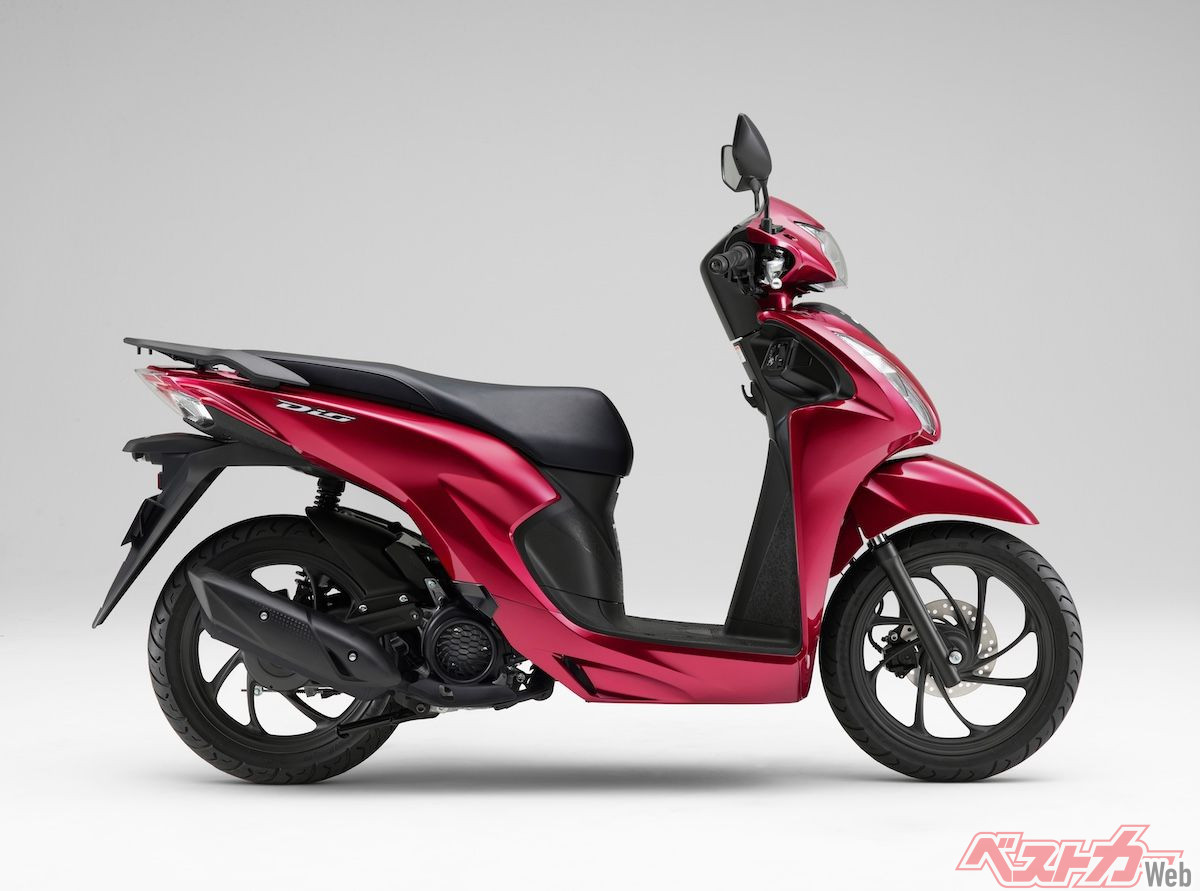 また、スクーターモデルの「ディオ110ライト」。こちらは、「ディオ110」をベースに、109cc・空冷単気筒エンジンの最高出力を6.4kW(8.7PS)から3.7kW(5.0PS)にダウン。同じく新基準原付に対応させたモデルです。