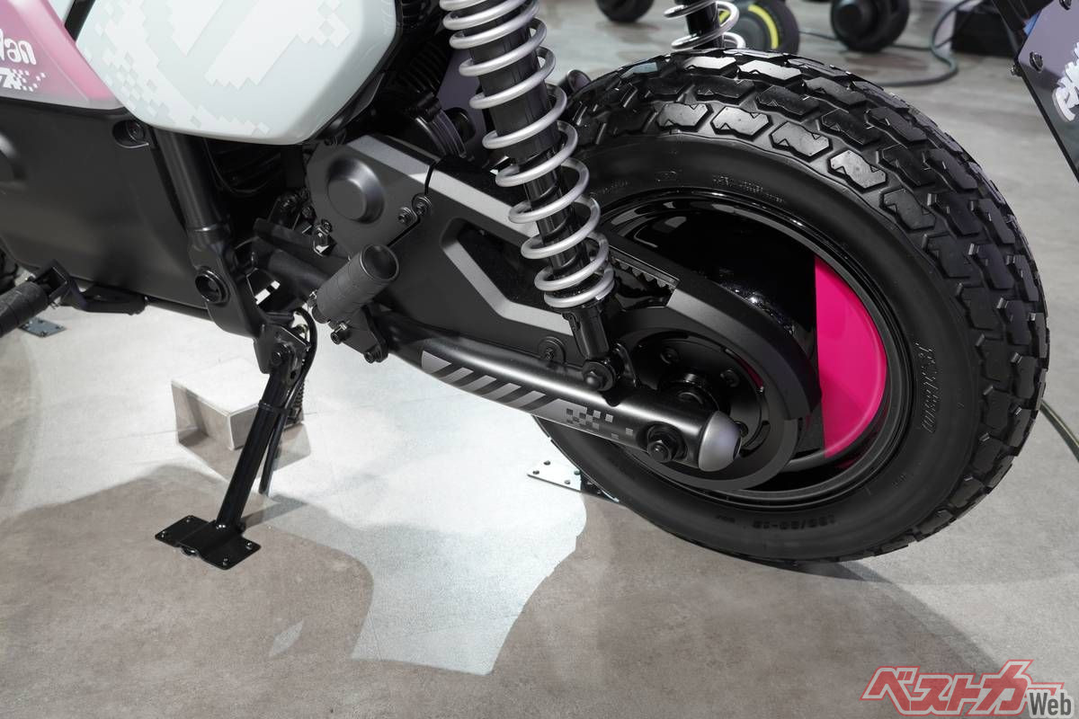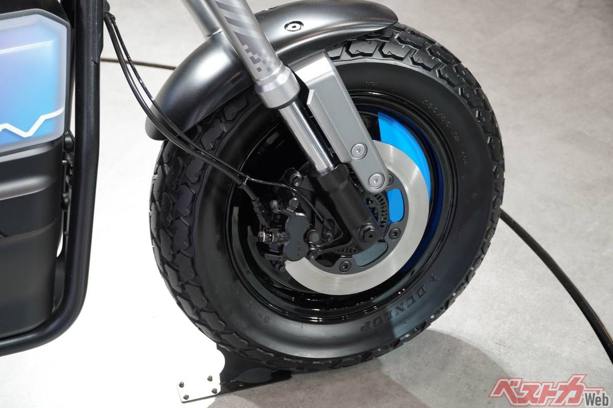 e-バンバンでは前後12インチ、130幅のワイドタイヤを装備してイメージを踏襲。