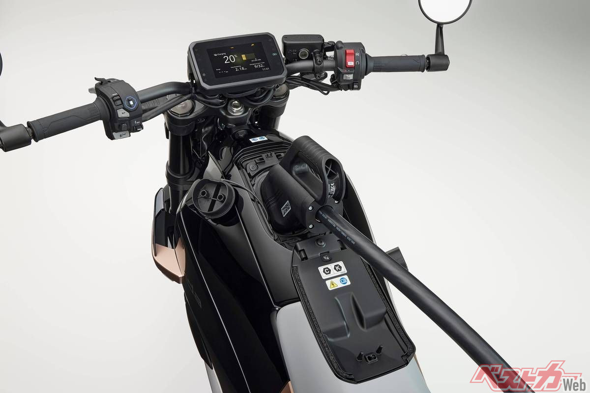 ホンダ初の固形リチウムイオンバッテリー搭載EVバイクで、航続距離は130km以上という。