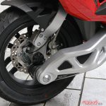 また、ISSはフロントブレーキをかけてもフロントまわりが減速Gで沈み込むことがないので、前のめりにならずに安定したブレーキングが可能。つまり、キャスター角やトレール量といったハンドリングに大きく影響する設定が変化しにくいため、常に一定のコーナリング性能を発揮できるのもメリットとなる。