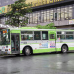 まずは平塚駅前にある神奈中バス本社を基準にして、直線距離でおよそ510km離れたJR盛岡駅前に停まっていた、盛岡エリアを広くカバーする岩手県交通所属の2台。
