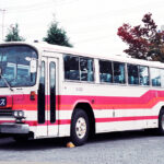 この時代、一般路線バスの車体デザインは数種見られ、旧来の笹の葉のようなデザインに加えオレンジ濃淡のストライプが見られた。また、ストライプのものも地色がピンクのものとホワイトのものが存在した。