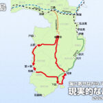 今回の現実的な1周ルートは現地2泊3日の行程で進めて、ちょくちょく立ち寄りしながら軽く観光見学できるくらいの緩さを残した路線バス旅になった。