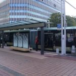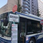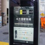 途中のバス停でも数人の乗降があり、朝乗車した「名古屋駅桜通」バス停まで戻ってきた。休日ということもあり交通量も多いはずであるが、車線変更や右折・左折もなかなかスムーズに運行できているようだ。筆者は次の「名古屋駅」バス停で下車する予定だが、ここでバス停にいた係員より次のバス停では最後尾のドアは開かないという案内があった。