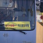 まつり会場周辺の駐車場は軒並み満車だったようで、シャトルバスを利用する人が多かったようだ。何か特別な表示になっているのかと思ったが、フロントガラスに観光バスで使用されるカードが貼られており「武四郎まつり シャトルバス 伊勢中川駅ルート1号車」の表示と、前面LEDには「シャトルバス」という表示になっていた。