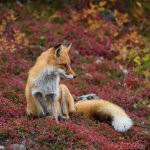 でも、これほど見事な黄金色のキツネに出会ったのは初めてで、「こんなに錦繍の風景に似合う動物は他にいない!」と断言したくなるほどの存在感でした。