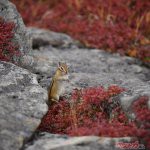 紅葉がピークの山で撮影していると、どんな野生動物が出てきても画になります。