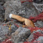エゾナキウサギとエゾシマリスを撮影していたときに現れたのですが、キタキツネは凄まじい殺気を放っていたので、キツネが狩りをあきらめて去ったあとも、ナキウサギもシマリスも一切姿を現すことはありませんでした。怯えてしまったのでしょうね。