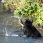 この季節、ヒグマたちが狙うのは鮭! 荒々しい野生の姿を見せてくれます。 写真・文/佐藤圭