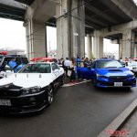 イベント開始から数時間経った16時頃、車両の撤収準備が始まった。会場の内外にはパトカーの出待ちのためにあらゆる場所に人だかりができる盛況ぶり。あまりの状況に警察官からは歩行者などの通行の妨げにならないように注意事項の説明があり、展示中以上の熱気を帯びていた。そして、それぞれの車両が帰路へ。全車両が赤色灯を点灯させ、続々と会場を後にする。一部のパトカーからは、集まったギャラリーへ感謝の言葉などをマイクで公報していた。そして、S4のお出ましである。赤色灯に前面警光灯、さらにはパトサインまで稼働させての大サービスぶりである。博物館を出発した先の道路は幸い(?) にも渋滞が起きており、S4をはじめとする各車両も渋滞に巻き込まれたため、その分幾度とないシャッターチャンスに恵まれ、熱心にカメラに収めるマニアも多く見られた。