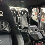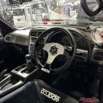 とても快適に過ごせそうな車内なのだが、前方へ目を向けるとマニュアルトランスミッションのシフトノブが顔を出し、助手席シート下にはSR20が眠っているというミスマッチも面白い。