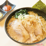 麺の王道たるラーメンでは、関越道赤城高原SA(上り)の「赤城盛りこってり背脂チャーシューメン」価格:1300円を紹介。上州六穀豚チャーシュー×群馬県産A脂(背脂)を使用した濃厚しょうゆ豚骨ラーメン。「味変」は小皿でついてくるにんにくと豆板醤で!