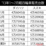 2013年1~7月の軽乗用車販売台数のシェアは、ダイハツが31.1%、スズキが28.7%と、ダイハツがリード。とはいえ隙があれば軽トップの座を奪い返したいスズキに対して、これを死守しようとするダイハツも必死。両社抜きつ抜かれつの激戦をピックアップ!(本稿は「ベストカー」2013年9月26日号に掲載した記事の再録版となります)