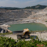 写真は山口県の宇部興産の鉱山で働く巨大ダンプ。コマツはチリで無人運転システムを実用化