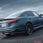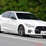 現行型日産スカイラインのマイナーチェンジ時に追加された、スカイライン史上最強となる最高出力405psの3L V6直噴ツインターボを搭載するスポーツセダン。7速ATは通常モデルより加速重視の最終減速比になっている。