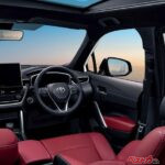 そんなカローラクロスのマイナーチェンジとあっては、気になる人は多いはず。タイで登場した新型カローラクロスは、エクステリアでは、フロントグリルとフロントバンパーがハニカムメッシュ模様となったほか、新意匠のLEDプロジェクターヘッドライトやシーケンシャルLEDフロントウインカー、2トーンカラーの新アロイホイールが採用され、高級感より高まった印象。インテリアについても、ブラックと新色ダークローズのツートンカラーを用意。ラグジュアリーかつスポーティーさも感じられる配色となっています。