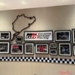 モリゾウさんが自分の原点だというニュルブルクリンク24時間レースの写真が飾られ、カウンターチェアにはモリゾウさんがニュルを走ったクルマの名前とゼッケンが記され、いつまでもクルマ談義が続けられそうな粋な演出となっている。