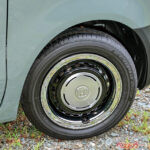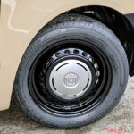 エクステリアは、フロントグリルからバンパーが専用デザインとなることで、タフでアクティブなアウトドアテイストを感じさせる。シンプルなデザインのホイールキャップもオシャレ。
