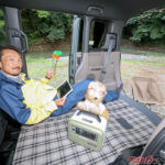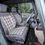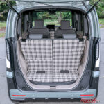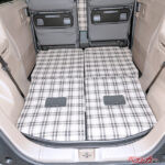 このチェック柄の表皮は撥水加工が施されていて、ちょっと汚れてもサッと拭けば綺麗になる。後席をバタンと前に倒せば奥行き161cmの「ふらっとテラス」となり、自分だけのくつろぎ空間になる。後席背もたれ後ろの撥水加工はこの「ふらっとテラス」形態で生きてくるのだ。