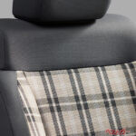 JOYのコンセプトを如実に表現しているのがチェック柄のインテリア。単にチェック柄の生地を採用したデザイン……ということではなく、後席背もたれ後ろから荷室フロアにかけて、チェック柄の表皮で覆われているのがポイント。