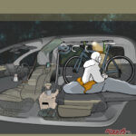 「いいアイデアを見つけるには? と考えた末、チームメンバー皆で内装モックの中でごはんを食べてみました。そうしたら、ドアに縦型ストレージをつくる! というユニークなアイデアを発見。そのアイデアを楽しくアピールするピクトグラムも添えてみました。どこに入っているか探してみてください」(インテリアデザイン担当/トヨタ自動車東日本/藤嶋亮達さん)