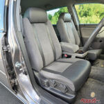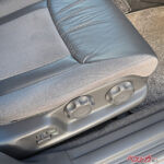 シートは本革も選べるが、今回借りたVタイプは質感の高い合成皮革カブロンとファブリックのコンビタイプ。表皮にシボが入りタッチよろしく、座面とサイドで硬さの違う厚みあるウレタンが配され、座り心地も上々。2000年式の距離8.6万kmだったがヘタりも少なく表皮もキレイ。