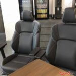 クラウンの上質な本革表皮に、主張しすぎない落ち着いたカッパーカラーのパイプアクセントや座り心地まで、まさにクラウンの純正シートである。