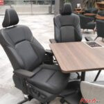 これはまだ試作段階ではあるが現行クラウンの本革シートをそのまま流用したキャスターチェアだ! なんと、パワーシートやシートヒーター、ベンチレーションの機能までそのまま再現していると言うのだから、本当に驚きだ。