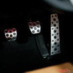 スポーツモードボタンを押すと、アクセルレスポンスが増し、車内に響くサウンドが断然レースっぽくなる。スピーカーで出してる音だけど、よくチューニングされてるぜ。