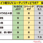 人気のスーパーハイト軽SUVを選ぶ時、ドライバー以外が気になるのはやはり後席の居住性や使い勝手。そこでここでは、N-BOX JOY、スペーシアギア、デリカミニ、タントファンクロスの4台のスーパーハイト軽SUVを、後席を中心にチェックしてみた!!