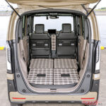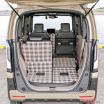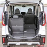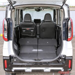 荷室は4車ともに広く、自転車も積める。注意したいのはタントファンクロスで、ほかの3車と異なり、後席の背もたれを前側に倒すと座面も連動して下がる機能が備わらない。広げた荷室の床にデコボコができる。