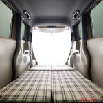 平らにするには、荷室後端のデッキボードを持ち上げる必要があり、荷室の床から天井までの高さが不足する。一長一短だ。