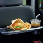 収納設備は各車とも充実する。特にスペーシアギアでは、助手席の前側にコンビニ弁当を置ける大型トレイが備わり、その下にはボックスティッシュが収まる収納設備、さらにその下にグローブボックスがある。助手席の下にも大型ボックスを装着した。以上のように、車種により、使い勝手には異なる特徴がある。