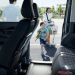 乗降性ではタントファンクロスが注目される。左側のBピラーをスライドドアに内蔵したから、前後ともに開くと開口幅がワイドに広がる。雨天時などはベビーカーを抱えた状態で乗り込み、子どもをチャイルドシートに座らせる作業を車内で行える。