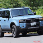 電動リアデフロック(ZX)と前スタビライザーの断続機構、Hi/Lo切り替えと6つの走行モード付き。204ps/51.0kgmの2.8Lディーゼルと160ps/25.1kgmの2.7Lガソリンを用意。