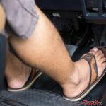 JAFが2021年に行ったユーザーテストでも、脱げやすいサンダル履きでの運転は、ペダルの移動や操作をする際にもたついてしまい、思ったタイミングで踏み込むことができなかったり、ペダルに引っかかってしまうこともあるなど、ブレーキ操作に大きく影響があるという結果がでています。