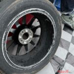 ギャラリーコーナーでは2カ所ともキッチリブレーキターンが決まり、楽しくなってきた瞬間、何かが起きた。最初はパンクだと思った。右と左のコーナーで特性が違うし、アクセル踏んでもブレーキ踏んでも真っ直ぐ走らない。木原コドラも感じており、タイヤ交換をすべく安全な場所に停止。飛び降りて確認したらパンクしてない! となればドライブシャフトか?