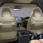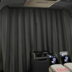 続いて大きな点では、フロントシートとセカンドシートの間にレクサスLMでは48インチの大型ワイドディスプレイを備えたパーティションがあるのに対し、アルファードはセパレートカーテンが備わるのみとなるのが大きな違いとなっている。