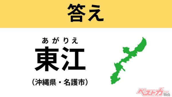 初見で読み方を推測するのは極めて難しい、沖縄ならではの難読地名の一つ。東江と書いて「あがりえ」と読むのが正解。沖縄には方角に関する方言が存在し、地域によっても異なりますが、太陽が東から上ることにちなんで「東」を「あがり」、「西」を「いり」と読むならわしがあるようです。